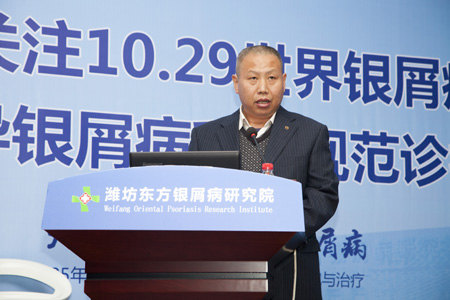 济南市慈善总会办公室主任杨宏伟先生在会上做了重要讲话:杨主任表示:银屑病患者是一个特殊的群体,因为银屑病的不规范诊疗,造成因病致贫、因病返贫的现象时有发生。济南银屑病研究院建院25来,始终热心于社会公益事业,得到了患者和社会各界的一致认可。为此,慈善总会与济南银屑病研究院携手启动“200万银康慈善基金”用于银屑病患者的专项援助,希望能帮助银屑病患者早日恢复!